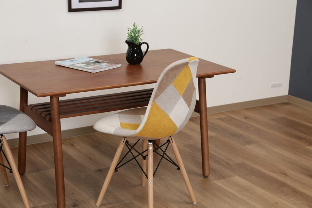 おしゃれなパッチワークの座面はファブリック素材を使用しており、夏はべたつかず、冬はひんやりしないので快適です。