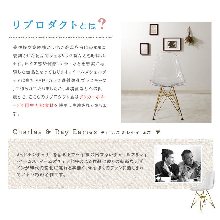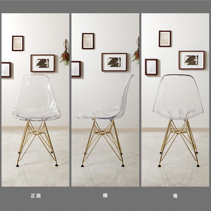 人気のクリアカラーのシェルチェアゴールド脚ver