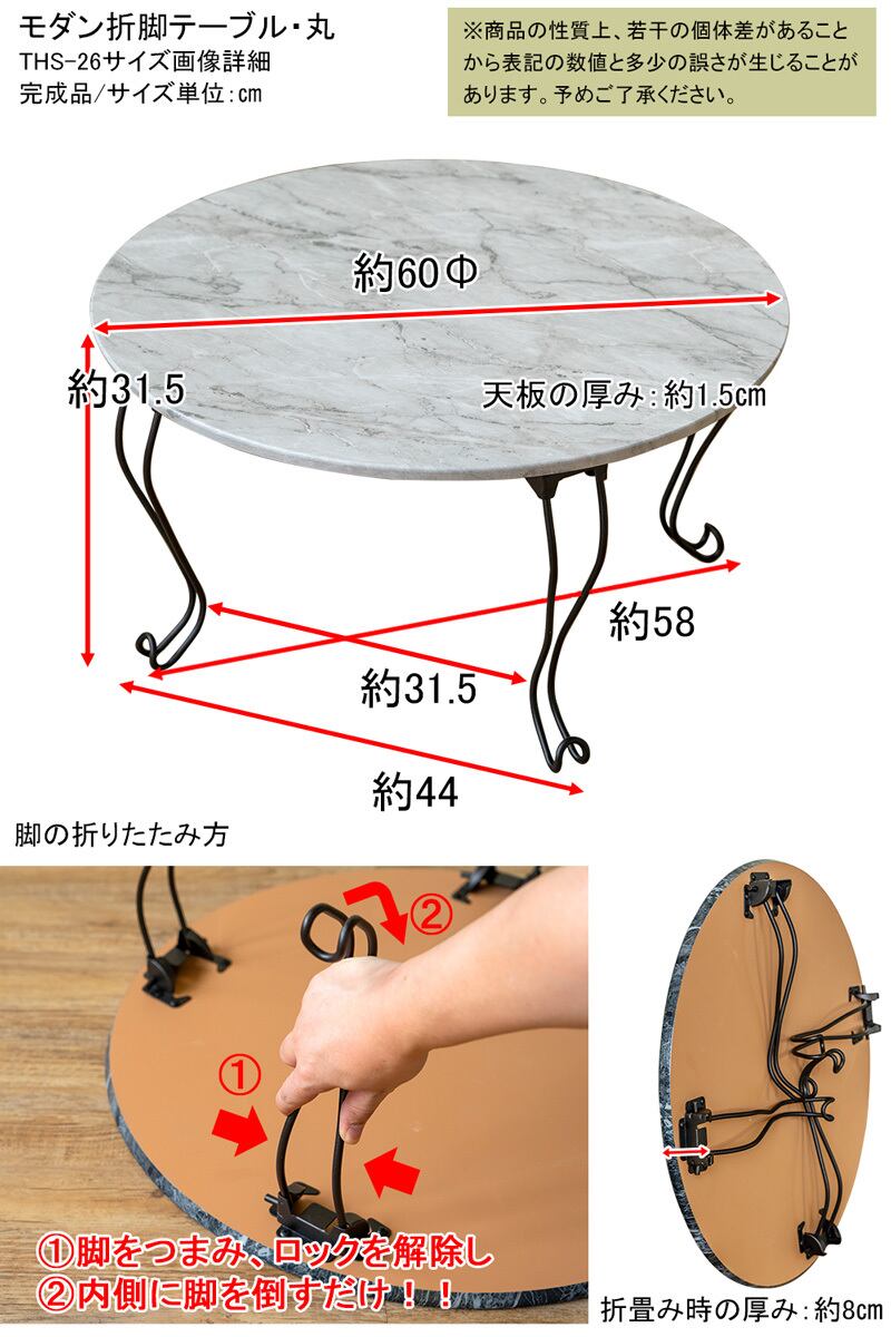 モダン折れ脚テーブル 丸型 MBK/MWH