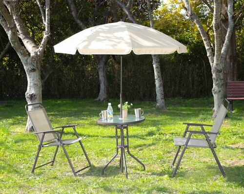 おうちで優雅なひと時を。パラソル付きガーデン4点セット