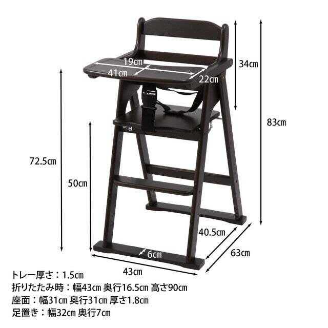 木製折り畳みベビーチェアー BR (17333)