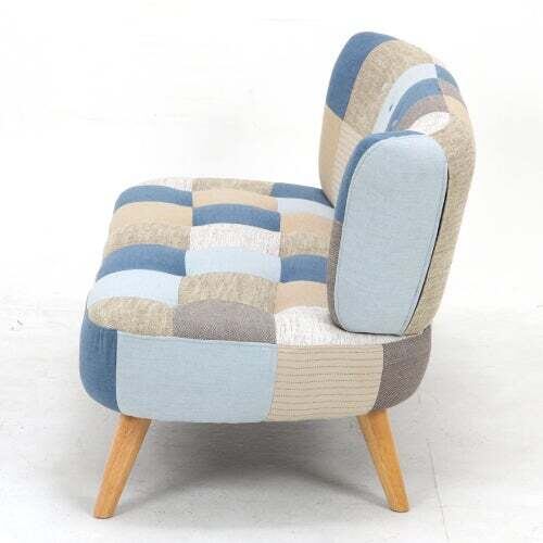 ソファ2P デイジーパッチワークブルー