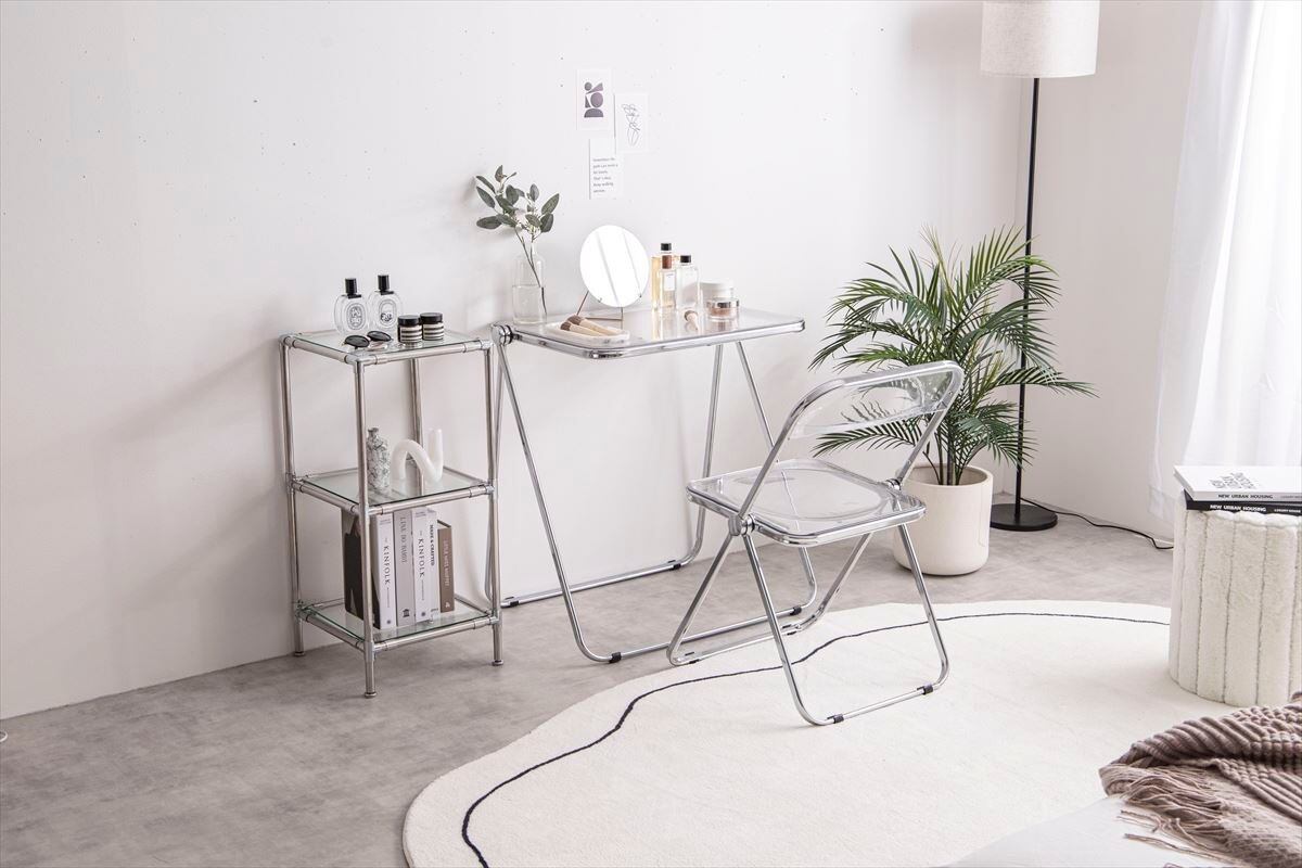 透明感ある美しい天板×シルバーフレームが印象的な『Glace(グラース)』折りたたみクリアデスク
