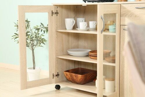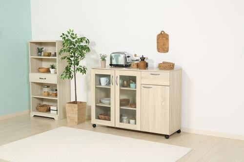 ホワイトウォッシュのカラーなので、お部屋のインテリアにも合い、キッチン収納としてだけではなく、リビングや書斎にも置けるデザインです。