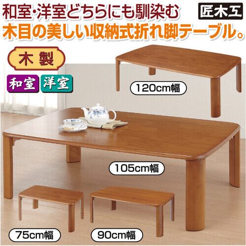 和室・洋室どちらにも馴染む木目の美しい収納式折れ脚テーブル。